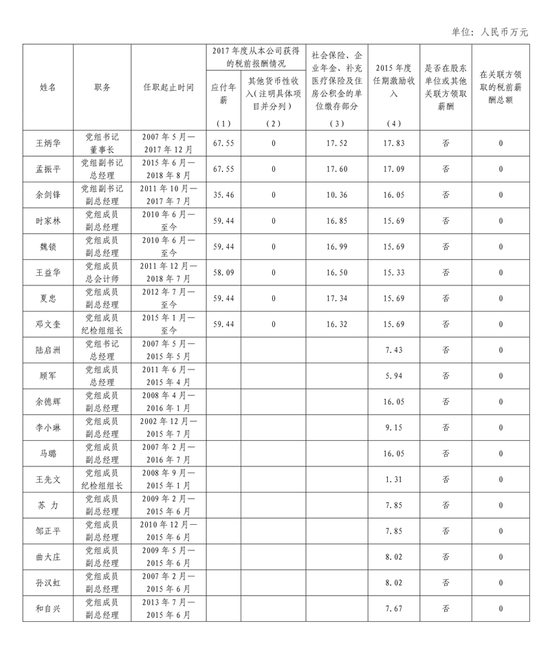 1.上表披露信息為我公司企業(yè)負責人2017年度全部應發(fā)稅前薪酬(不含2017年發(fā)放的以往年度薪酬)。其中,第(1)、(4)項由國務院國資委核定。