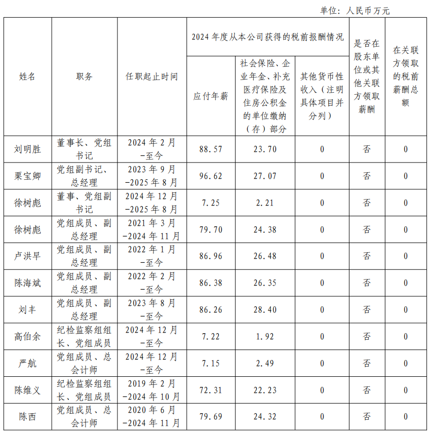 國家電力投資集團有限公司企業(yè)負責(zé)人2024年度薪酬情況