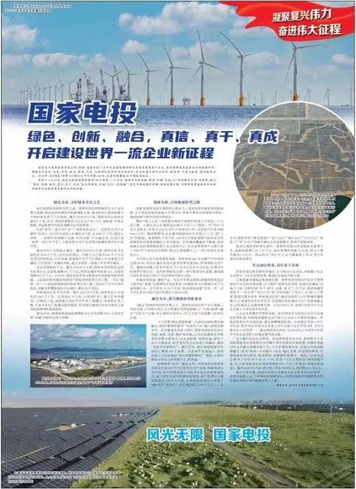 《人民日報》:國家電投 綠色、創(chuàng)新、融合,真信、真干、真成 開啟建設(shè)世界一流企業(yè)新征程