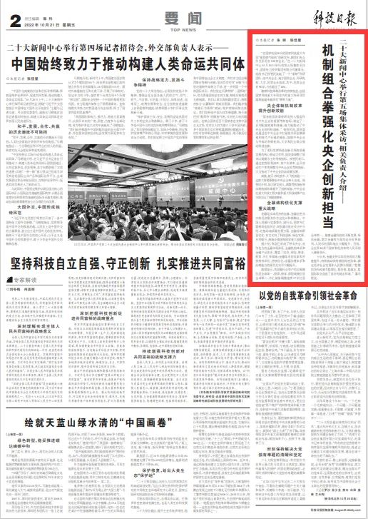 10月20日,《科技日報》要聞版刊發(fā)《機制組合拳強化央企創(chuàng)新?lián)敗罚瑢译娡饵h組書記、董事長錢智民等黨員代表在二十大新聞中心集體采訪觀點進行報道。訪談中,錢智民介紹了央企科技創(chuàng)新發(fā)展成就,并以“重型燃氣輪機”國家科技重大專項為例,講述國家電投在勇當原創(chuàng)技術策源地和現(xiàn)代產(chǎn)業(yè)鏈“鏈長”中發(fā)揮的重要作用。以下為報道全文: